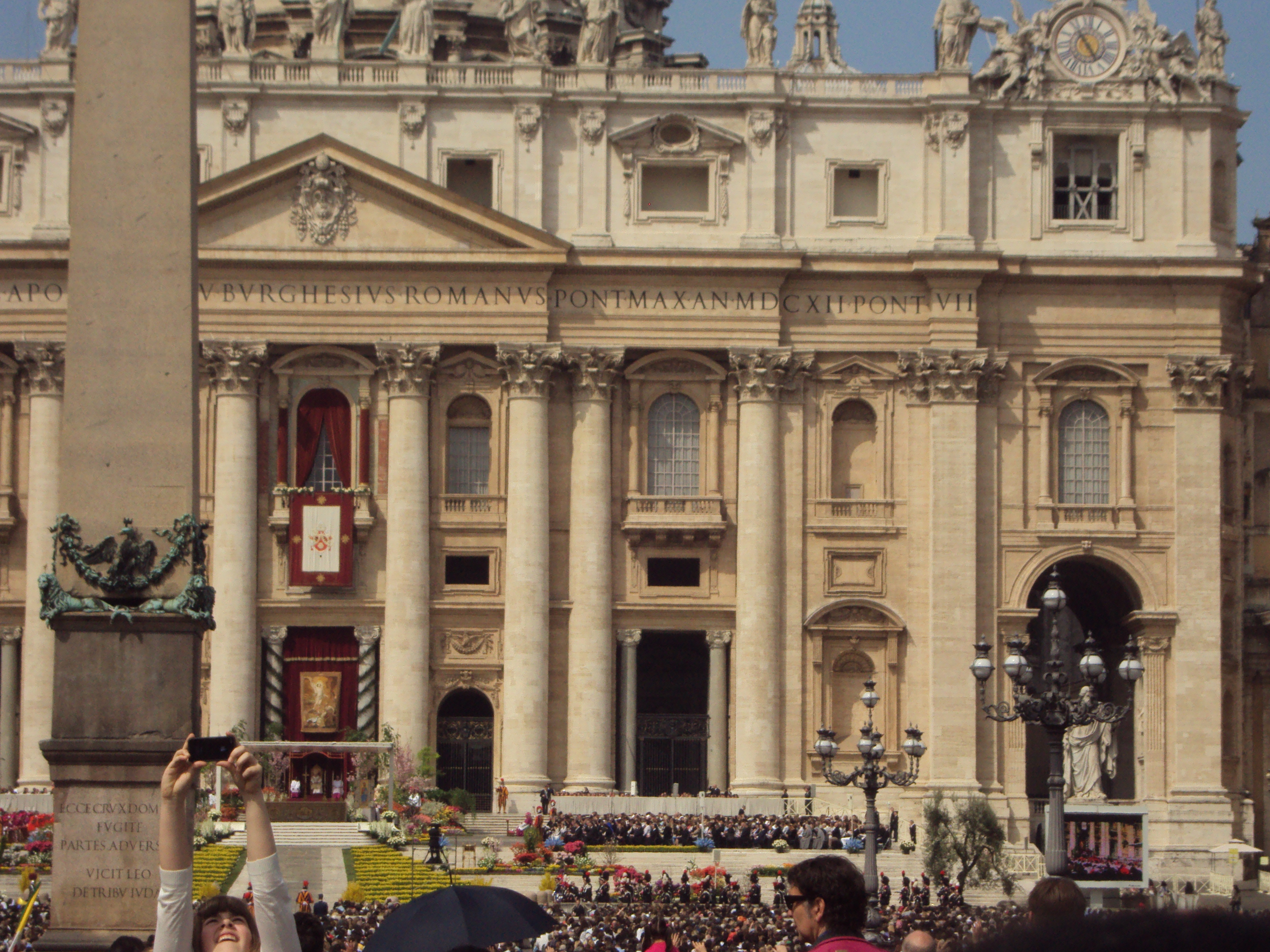 Close view of St. Peter’s (if you look closely in the center steps in front the basilica you can see Pope Benedict XVI performing Easter Sunday Mass)
