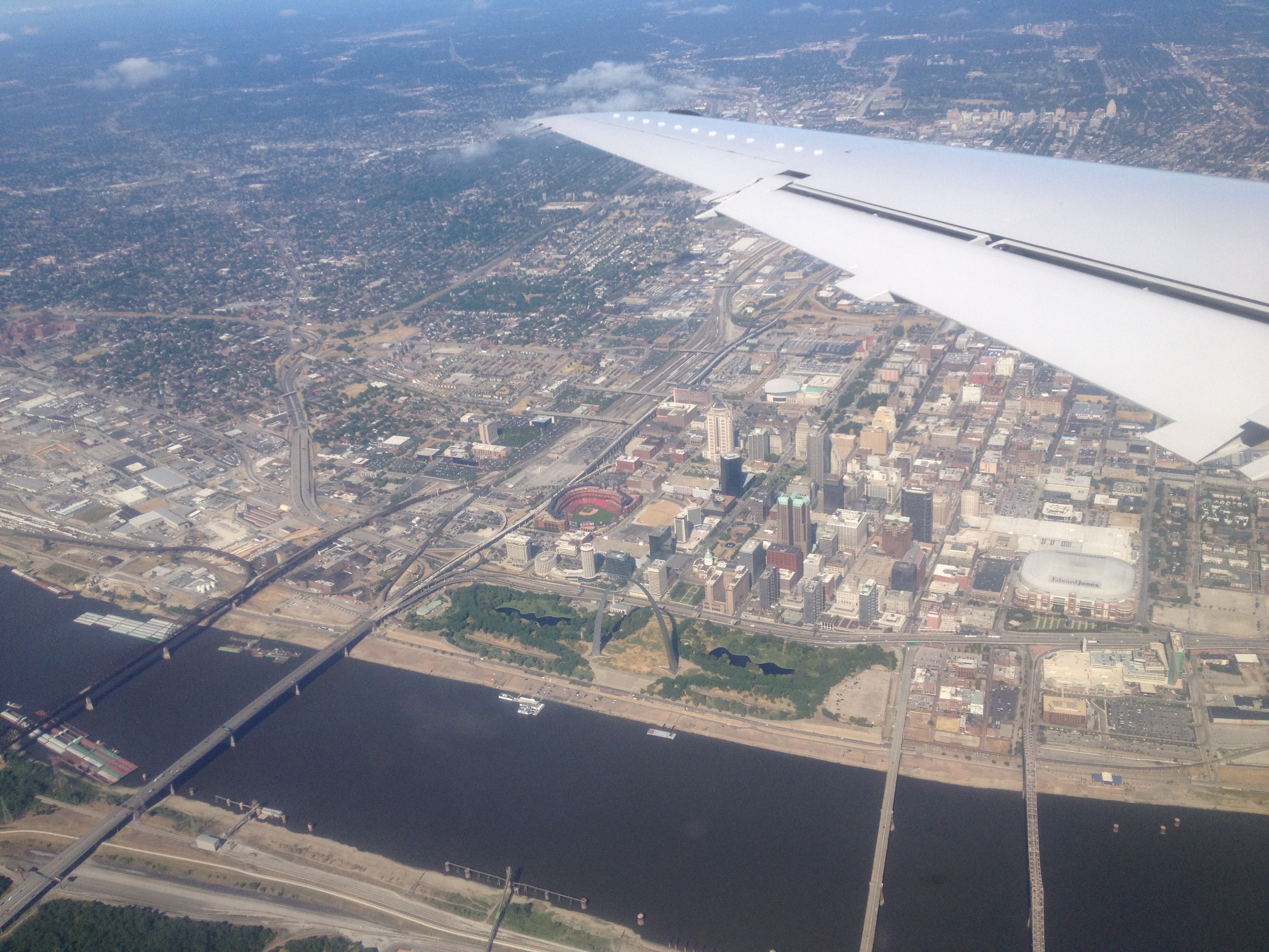 I had to come up for a couple of days to St. Louis for work and took the opportunity this morning to snap a good picture of downtown St. Louis on the approach to the airport. Enjoy!