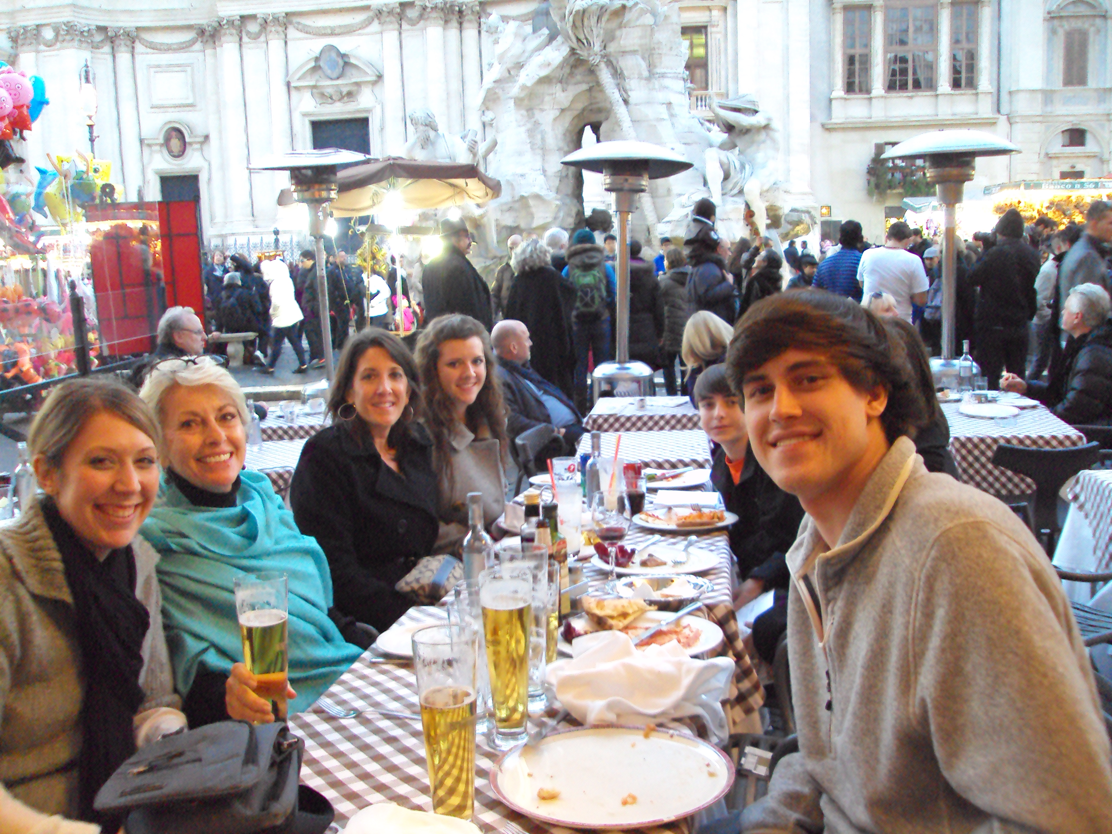 After touring the Vatican we headed on foot towards Piazza Navona to have a late lunch. Even though it is super touristy and expensive the atmosphere was hard to pass up so we ate right on the square. Honestly, I think we were all hungry enough to not even notice whether the food was good or lot. Although, I think the food was pretty solid. Group picture from lunch (not sure if you can see in the picture that my sister and niece ordered Pina Colada’s…….in Rome):