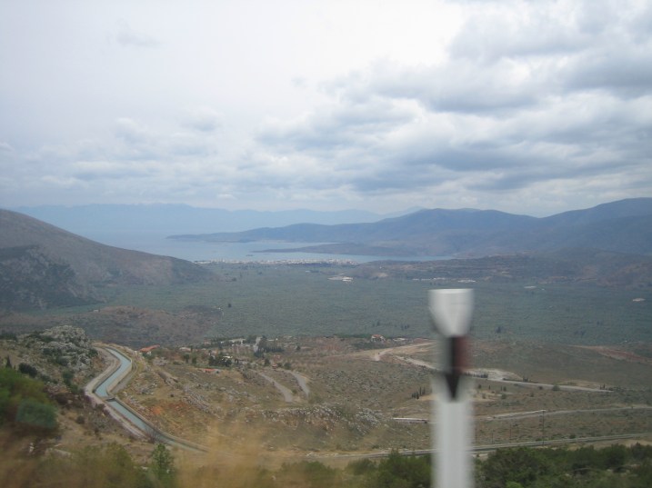 As a travel note, try to not plan to eat in the area surrounding Delphi as the prices are very high and the food quality low. For a good lunch, continue on to the coastal town of Itea for an authentic experience. See below for the view looking down towards Itea and Olive Farms.
