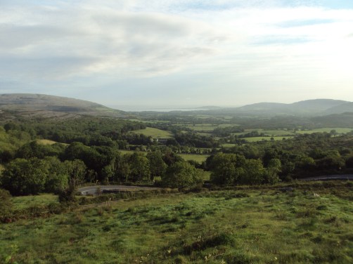 We departed Galway around 7:30 AM and drove south towards Lahinch, Ireland (near the Cliffs of Moher). The drive took about 2 hours even though our GPS indicated a drive time of 1 hour and 30 minutes, guess it didn’t account for the cliffs/stone walls/hairpin turns on the roads to Lahinch! The scenery on the way was amazing though as we passed through the Burren (extremely rock landscape) and across some large hills lining the coast. Here is a picture from our drive near the top of one of the hills (if you look closely you can see the hairpin turn):