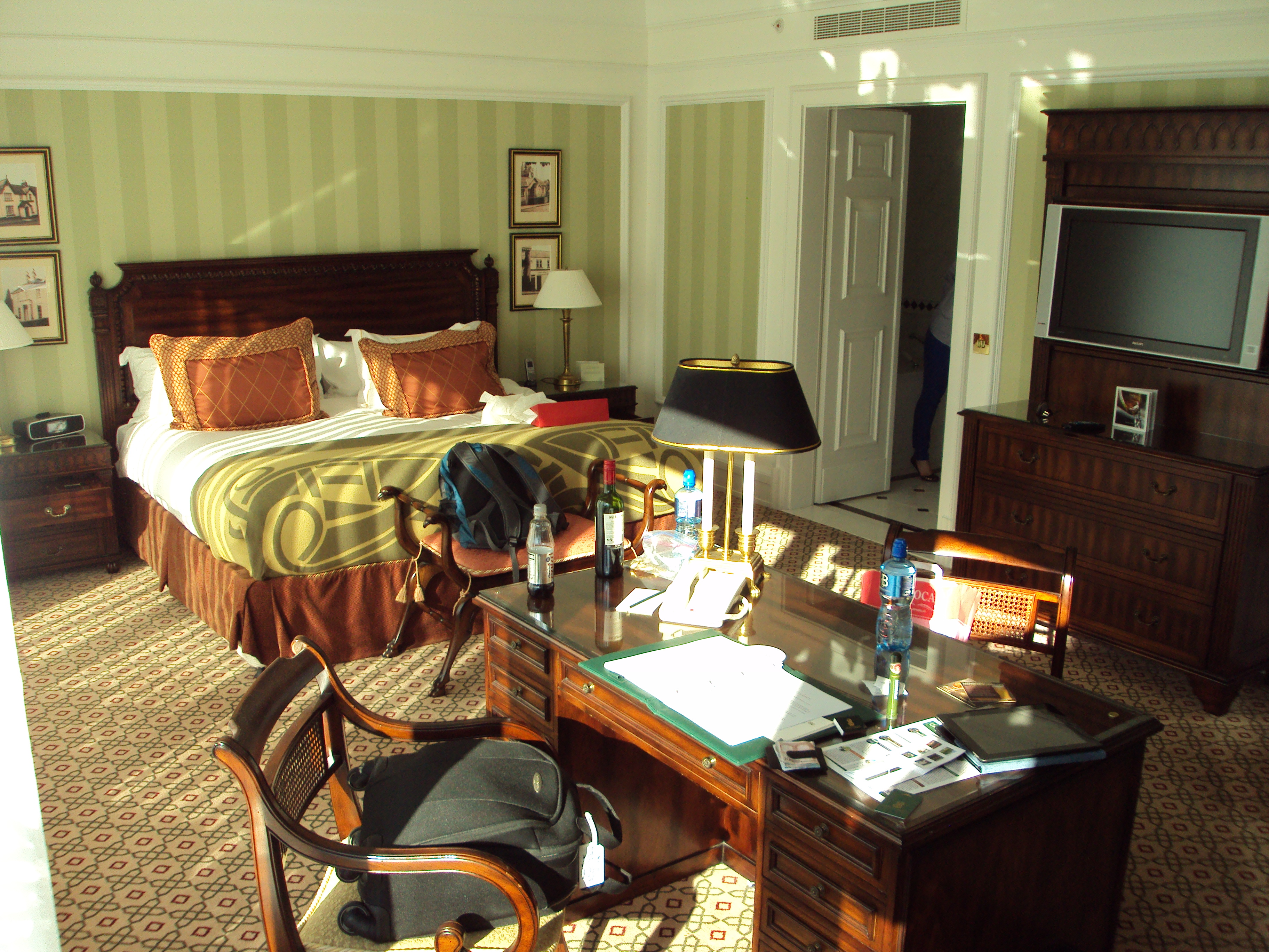 The taxi ride took about 25 minutes and cost approximately 35 Euro plus a (small) tip to get to the Conrad Dublin. We arrived at the hotel pretty early (10 AM) but we were allowed to go ahead and check-in since I am a Diamond member and they had already cleaned our room. Here are a couple of pictures of the room:
