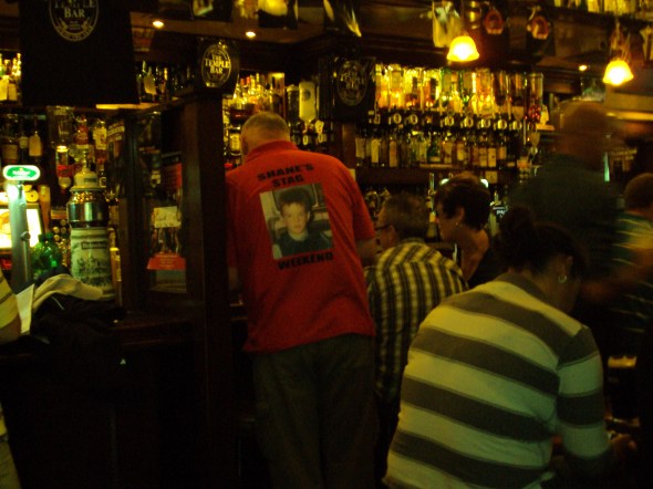 Inside Temple Bar (sorry for getting out of order the with pictures) (This must be an Irish/British thing to have Stag parties where everyone wears matching shirts, see the guy in red)